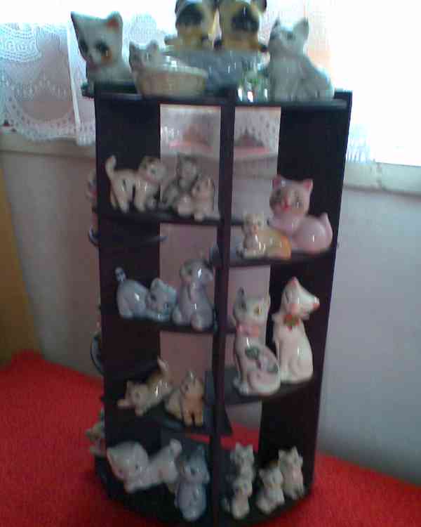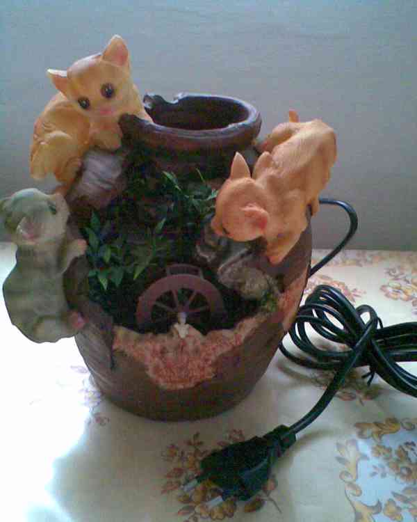 dekorační i funkční fontánka s kočičkami a kocourek s kočičkou s kočárkem s kotátky pokladnička