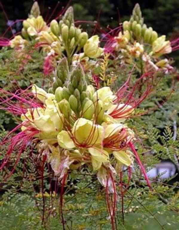 Caesalpinia Gilliesii je teplomilný opadavý keř, který má svůj původ v jižní Americe, kde roste i v podobě menšího stromu. Běžně je pěstován ve Středozemí i v tropech celého světa. V našich klimatických podmínkách musí přezimovat v bezmrazých prostorách. Snad pro jeho nádherné květy je znám též jako „Pták z ráje“. Doba květu Caesalpinia Gilliesii je červenec až srpen.