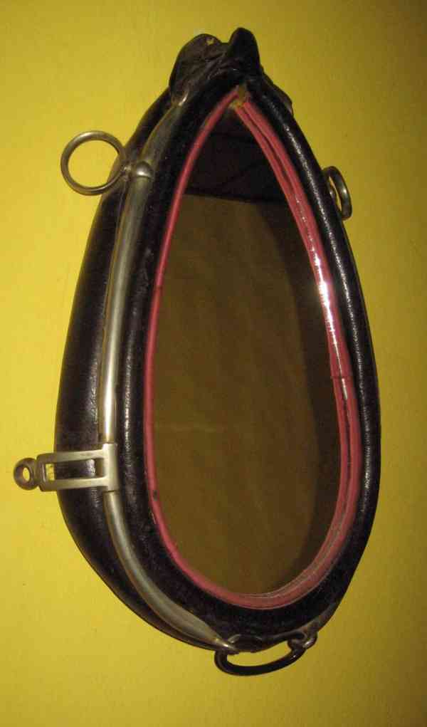 dřevěná kazeta s vínovým sametem (kufřik byl po obvodu v minulosti přetřen černou)