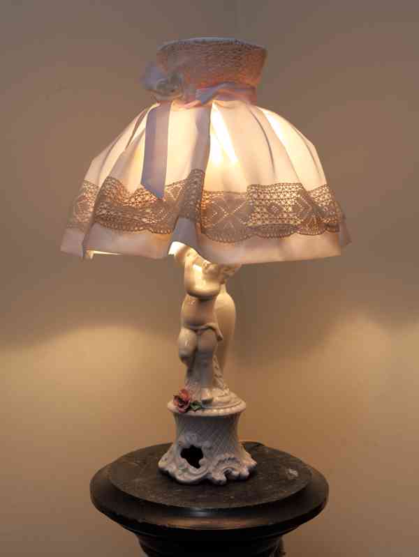 Lampička se soškou andílka na rokokově ztvárněmém podstavci s ozdobným stínidlem. Lampička je na jednu žárovky s klasickým závitem E27 do 40W.