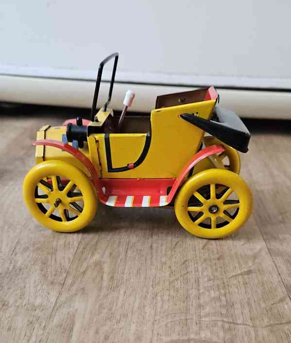 RETRO PLECHOVÉ AUTIČKO NATAHOVÁNÍ PÁČKOU FUNKČNÍ CHYBÍ VOLANT A 1 SVĚTLO.