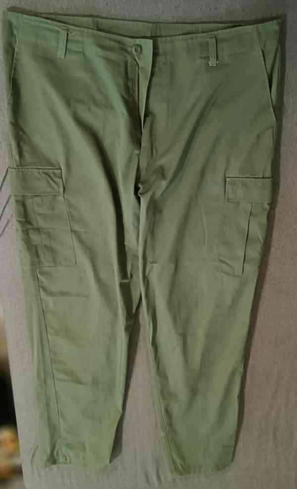 Prodám nošené (asi 6x prané na 40°C) vojenské kalhoty zv.MFH (non-brand) typ US-Vietnam (repro!) barva OLIV, velikost XXL(regular LONG! +5cm). Výška kalhot 117cm, výška rozkroku 36cm, pas 113cm (regulace 103 - 113cm), zadek/boky 134cm, poklopec - zip, opaskové kroužky 6x, zadní kapsy a stehenní cargo-kapsy na knoflíky, kapsy boční bez zavírání. Rok výroby 2008/2009 (prvovýroba reprodukce) šito v Indonesii pod licencí MFH Int. Comp Německo - NEbrandované !). Vhodné například na Airsoft nebo do přírody. Cena 300 Kč