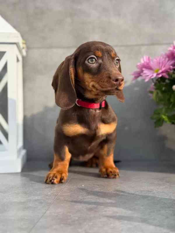 Krásná štěňata jezevčíka právě oslavila 12. týden a nyní jsou připravena setkat se se svou novou milující rodinou. Jsou včas očkována, naučena na nočník, registrovaná a mají vynikající rodokmen.