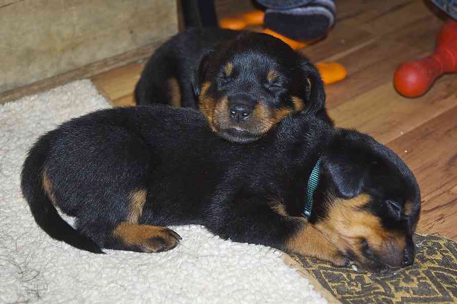 Štěňata rotvajlera (samci a samice) pro milovníky domácích mazlíčků. Jsou 12 týdnů stará, veterinářsky prohlédnutá, odčervená a mají všechny platné veterinární záznamy. Naše štěňata jsou dobře vycvičená a velmi socializovaná.